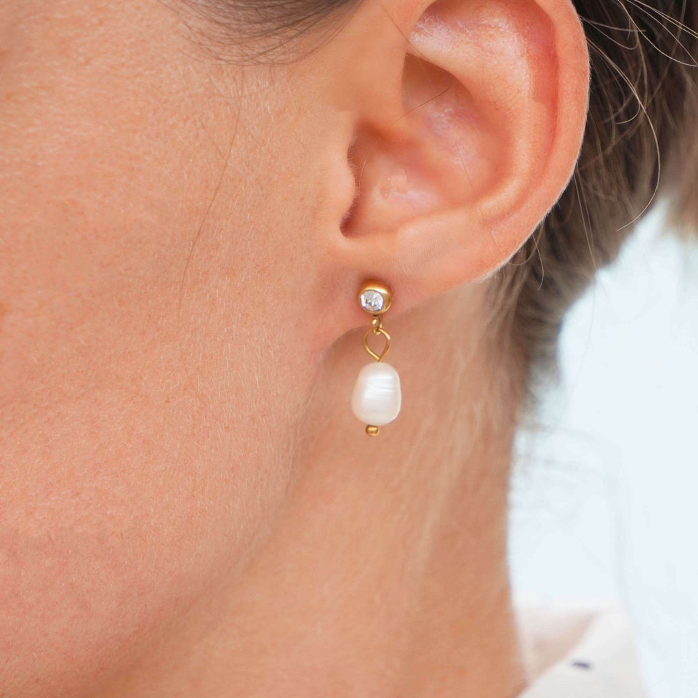 Our Clara Pearl Earrings capture the perfect balance of sparkle and grace. Elegant yet versatile, they bring an air of sophistication to both everyday moments and special occasions.